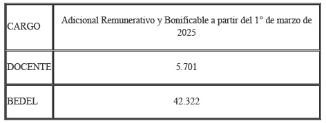 Adicionales Remunerativos y Bonificables aplicables a los cargos docentes y bedeles que se desempeñan en el