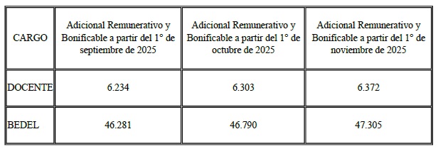 Bonificables aplicables a los cargos docentes y bedeles que se