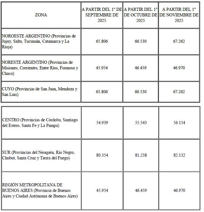 ARTÍCULO 5°.- Fíjase el valor del adicional remuneratorio por prestaciones de servicios en la Antártida en los términos previstos en la Ley N° 23.547 para el personal militar establecido por el artículo 1° del Decreto N° 690 del 6 de junio de 2011 y sus modificatorios en la suma de PESOS UN MILLÓN DOSCIENTOS SETENTA Y OCHO MIL NOVECIENTOS TREINTA Y UNO ($1.278.931) a partir del 1º de septiembre de 2025, PESOS UN MILLÓN DOSCIENTOS NOVENTA Y DOS MIL NOVECIENTOS NOVENTA Y NUEVE ($1.292.999) a partir del 1° de octubre de 2025 y PESOS UN MILLÓN TRESCIENTOS SIETE MIL DOSCIENTOS VEINTIDÓS ($1.307.222) a partir del 1° de noviembre de 2025.
