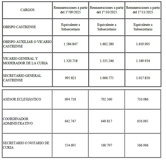 Remuneraciones de los Integrantes de la Curia Castrense u Oficina Central del Obispado Castrense