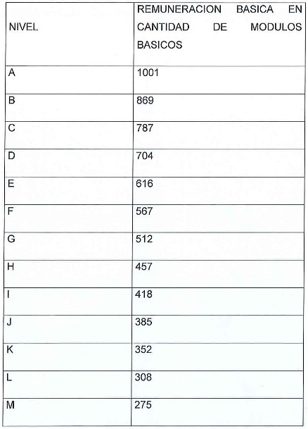 CLAUSULA PRIMERA: Sustituir la grilla correspondiente a la Remuneración Básica del Nivel Escalafonario para el personal de la ADMINISTRACION NACIONAL DE AVIACION CIVIL, aprobada por el Anexo al artículo 1o del Anexo III del Decreto N° 2.314/09, conforme los valores y la vigencia que se detalla seguidamente: