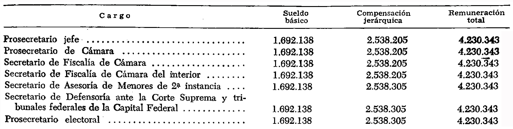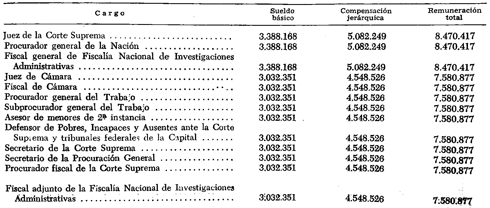 ESTABLECE ESCALA DE REMUNERACIONES DE MAGISTRADOS, FUNCIONARIOS Y PERSONAL JUDICIAL