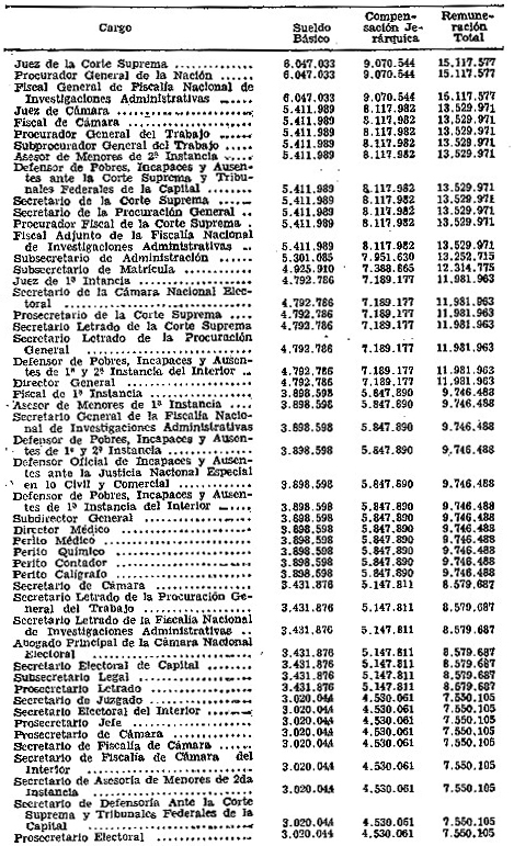 Retribuciones que regirán a partir del 1° de mayo de 1981 para los Magistrados, Funcionarios y Empleados.